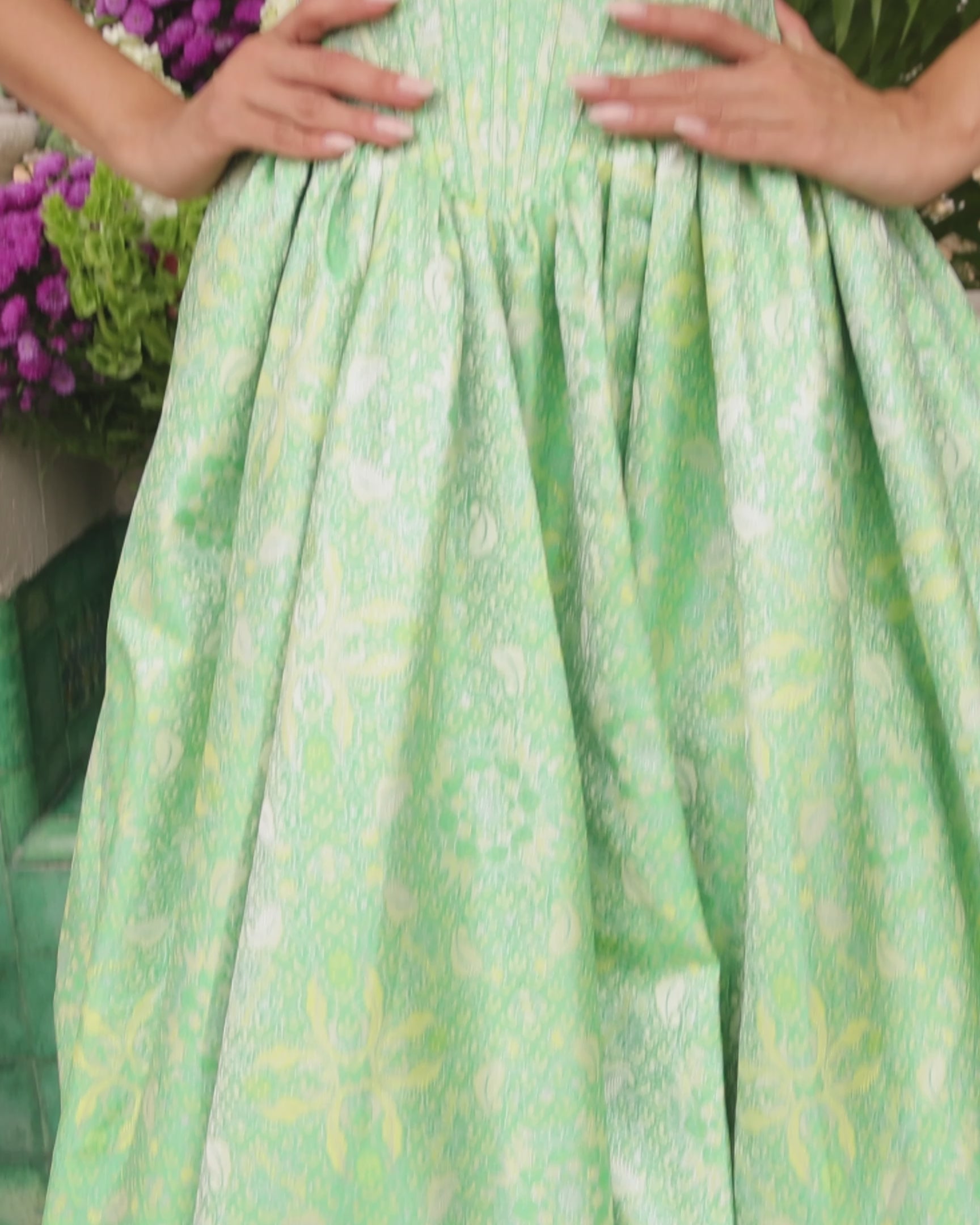- Material: Metallic Jacquard with Beaded Bodice